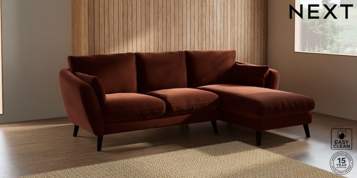 6.12.1 Buy Orlo Relaxed Sit Medium Sofa Chaise - Right Hand Plush Velvet Easy Clean Ginger Orange Retro Tapered - Dark from the Next UK online shop Click here to use our accessible website