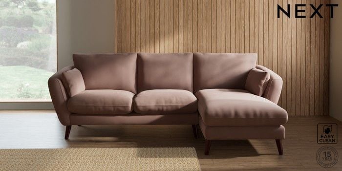 6.12.1 Buy Orlo Relaxed Sit Medium Sofa Chaise - Right Hand Plush Velvet Easy Clean Mid Natural Retro Tapered - Dark Brown from the Next UK online shop Click here to use our accessible website