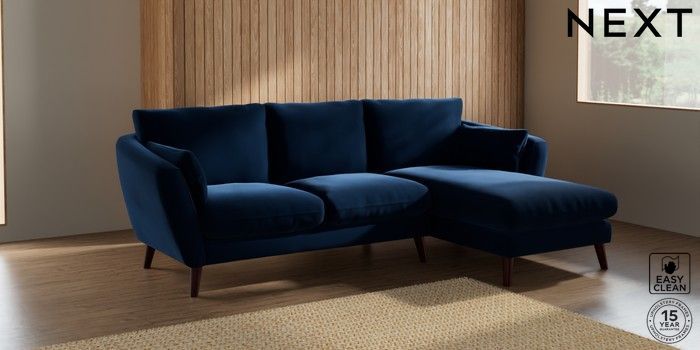 6.12.1 Buy Orlo Relaxed Sit Medium Sofa Chaise - Right Hand Plush Velvet Easy Clean Navy Blue Retro Tapered - Dark Brown from the Next UK online shop Click here to use our accessible website