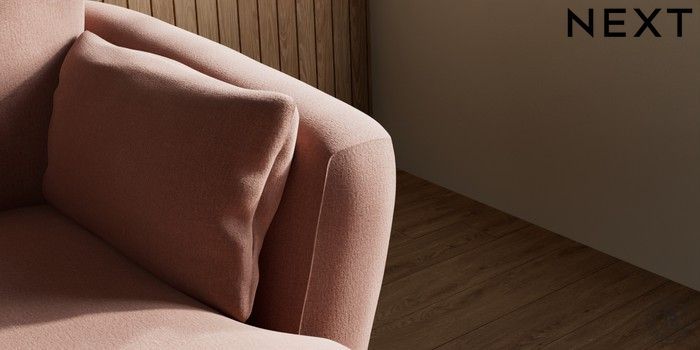 6.12.1 Buy Orlo Relaxed Sit Medium Sofa Chaise - Right Hand Relaxed Linen Look Light Rust Brown Retro Tapered - Dark Brown from the Next UK online shop Click here to use our accessible website