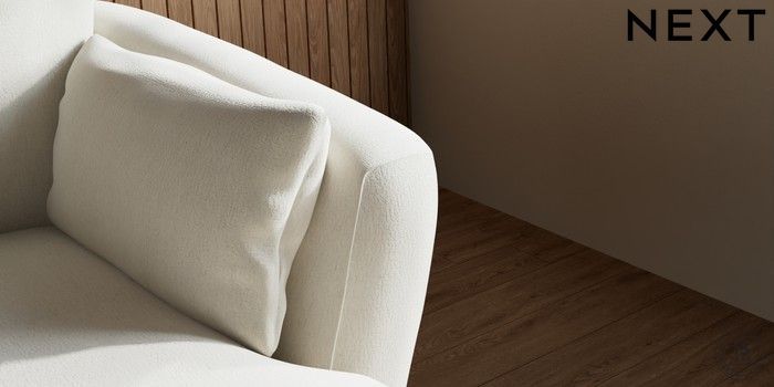 6.12.1 Buy Orlo Relaxed Sit Medium Sofa Chaise - Right Hand Relaxed Linen Look Oyster Retro Tapered - Mid from the Next UK online shop Click here to use our accessible website