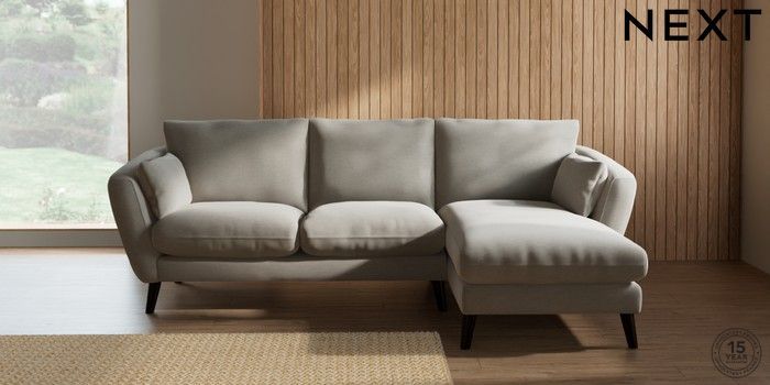7.0.3 Buy Orlo Relaxed Sit Medium Sofa Chaise - Right Hand Ripple Chenille Light Natural Retro Tapered - Dark from the Next UK online shop Click here to use our accessible website