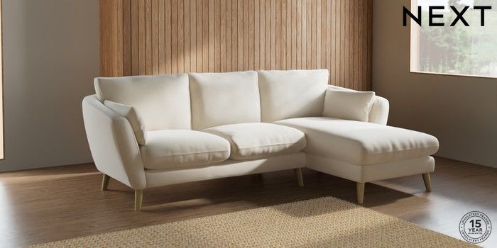 6.12.1 Buy Orlo Relaxed Sit Medium Sofa Chaise - Right Hand Ripple Chenille Oyster Retro Tapered - Light from the Next UK online shop Click here to use our accessible website