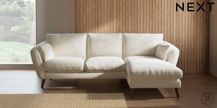 7.0.3 Buy Orlo Relaxed Sit Medium Sofa Chaise - Right Hand Ripple Chenille Oyster Retro Tapered - Mid from the Next UK online shop Click here to use our accessible website