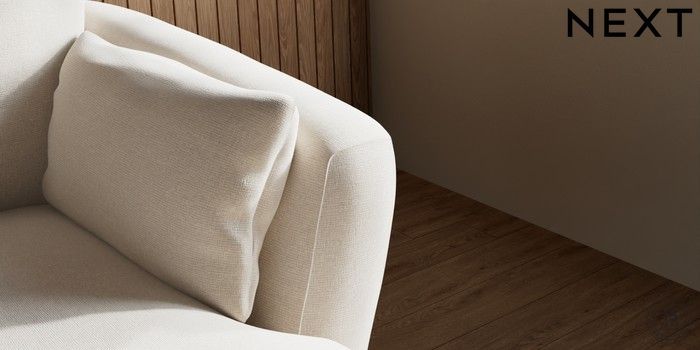 6.12.1 Buy Orlo Relaxed Sit Medium Sofa Chaise - Right Hand Studio Chenille Oyster Retro Tapered - Light from the Next UK online shop Click here to use our accessible website