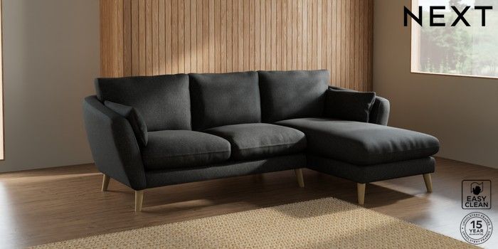 6.12.1 Buy Orlo Relaxed Sit Medium Sofa Chaise - Right Hand Tweedy Blend Easy Clean Charcoal Grey Retro Tapered - Light from the Next UK online shop Click here to use our accessible website