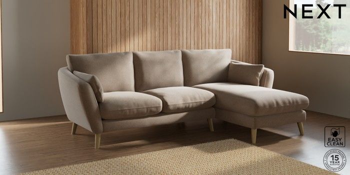6.12.1 Buy Orlo Relaxed Sit Medium Sofa Chaise - Right Hand Tweedy Blend Easy Clean Light Dove Natural Retro Tapered - Light from the Next UK online shop Click here to use our accessible website