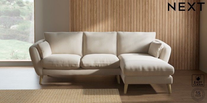 6.12.1 Buy Orlo Relaxed Sit Medium Sofa Chaise - Right Hand Tweedy Blend Easy Clean Oyster Retro Tapered - Light from the Next UK online shop Click here to use our accessible website