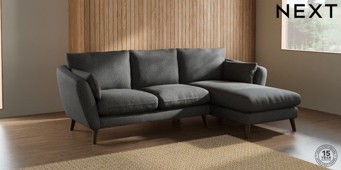 6.12.1 Buy Orlo Relaxed Sit Medium Sofa Chaise - Right Hand Tweedy Chenille Dark Grey Retro Tapered - Mid from the Next UK online shop Click here to use our accessible website