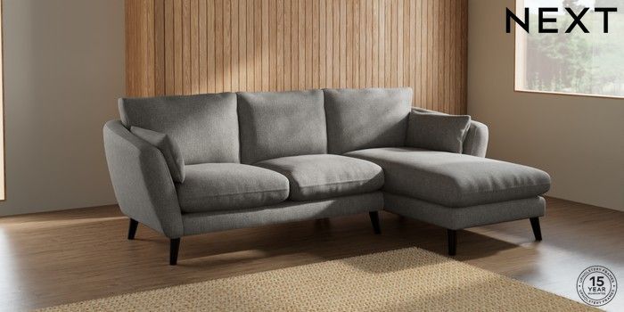6.12.1 Buy Orlo Relaxed Sit Medium Sofa Chaise - Right Hand Tweedy Chenille Mid Grey Retro Tapered - Dark from the Next UK online shop Click here to use our accessible website
