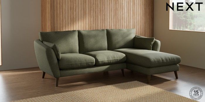 6.12.1 Buy Orlo Relaxed Sit Medium Sofa Chaise - Right Hand Tweedy Chenille Mid Moss Green Retro Tapered - Mid from the Next UK online shop Click here to use our accessible website