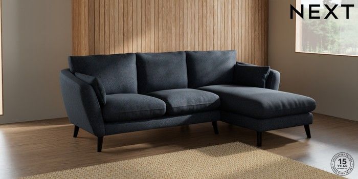 6.12.1 Buy Orlo Relaxed Sit Medium Sofa Chaise - Right Hand Tweedy Chenille Navy Blue Retro Tapered - Dark from the Next UK online shop Click here to use our accessible website