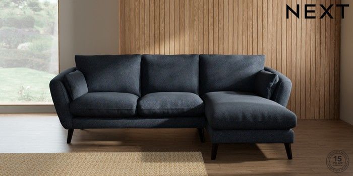 7.0.3 Buy Orlo Relaxed Sit Medium Sofa Chaise - Right Hand Tweedy Chenille Navy Blue Retro Tapered - Dark from the Next UK online shop Click here to use our accessible website