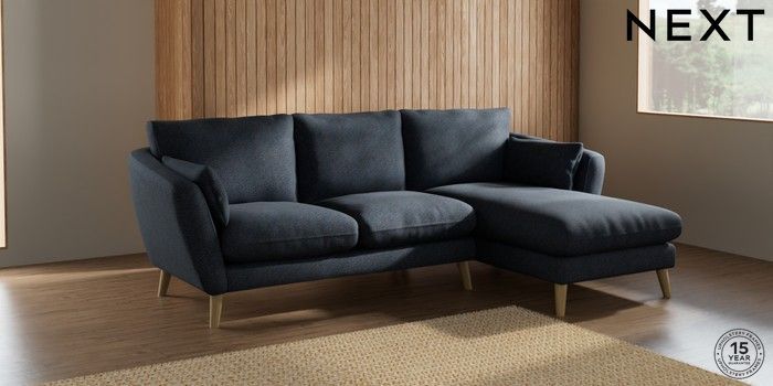 6.12.1 Buy Orlo Relaxed Sit Medium Sofa Chaise - Right Hand Tweedy Chenille Navy Blue Retro Tapered - Light from the Next UK online shop Click here to use our accessible website