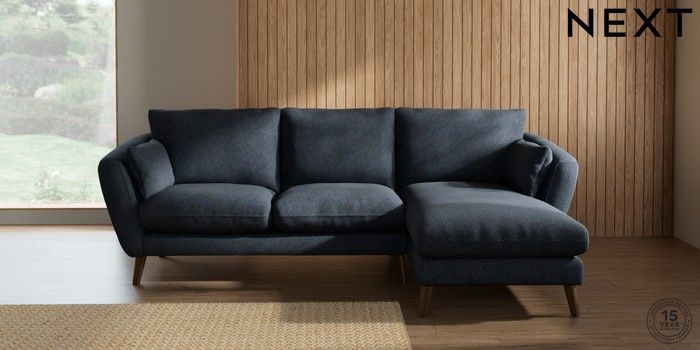 7.0.3 Buy Orlo Relaxed Sit Medium Sofa Chaise - Right Hand Tweedy Chenille Navy Blue Retro Tapered - Mid from the Next UK online shop Click here to use our accessible website