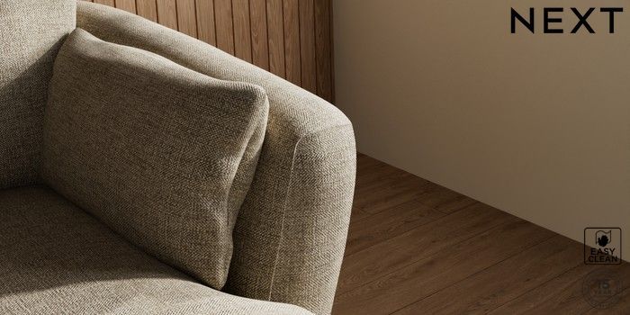 6.12.1 Buy Orlo Relaxed Sit Medium Sofa Chaise - Right Hand Woven Chenille Easy Clean Mid Natural Retro Tapered - Dark from the Next UK online shop Click here to use our accessible website