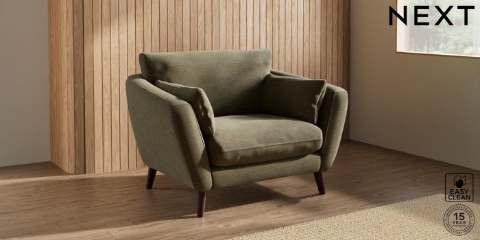 6.12.1 Buy Orlo Relaxed Sit Snuggle Fine Chenille Easy Clean Dark Moss Green Retro Tapered - Dark Brown from the Next UK online shop Click here to use our accessible website