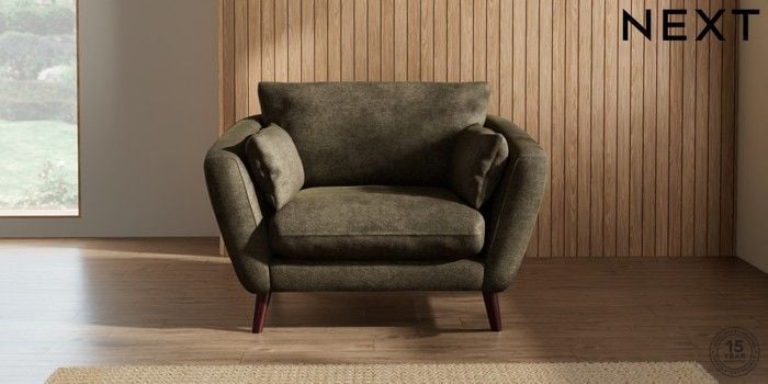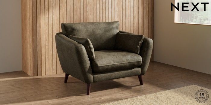6.12.1 Buy Orlo Relaxed Sit Snuggle Plush Chenille Moss Green Retro Tapered - Dark Brown from the Next UK online shop Click here to use our accessible website