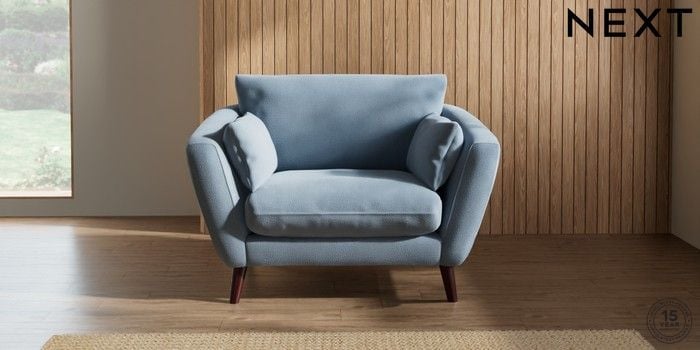 6.12.1 Buy Orlo Relaxed Sit Snuggle Relaxed Linen Look Mid Blue Retro Tapered - Dark Brown from the Next UK online shop Click here to use our accessible website