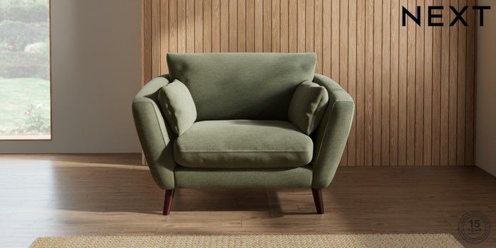 6.12.1 Buy Orlo Relaxed Sit Snuggle Ripple Chenille Mid Moss Green Retro Tapered - Dark Brown from the Next UK online shop Click here to use our accessible website