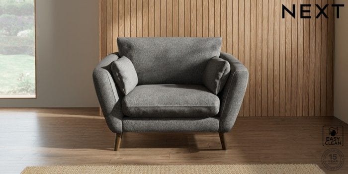 6.12.1 Buy Orlo Relaxed Sit Snuggle Tweedy Blend Easy Clean Dark Grey Retro Tapered - Mid from the Next UK online shop Click here to use our accessible website