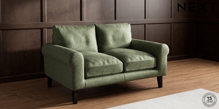 7.0.3 Buy Palermo Relaxed Sit 2 Seater Small Sofa Boucle Chenille Dark Moss Green Tapered - Dark from the Next UK online shop Click here to use our accessible website