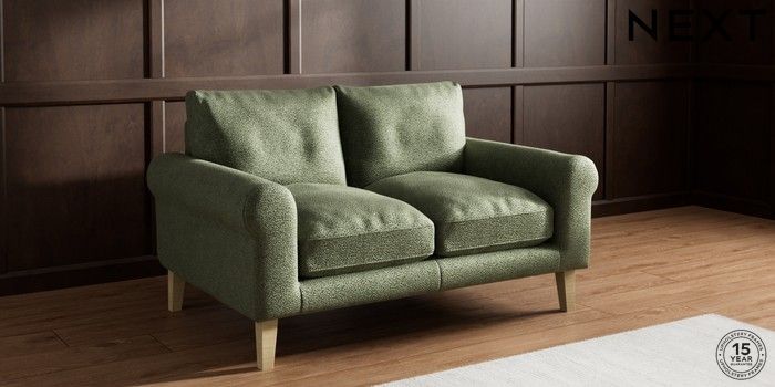 7.0.3 Buy Palermo Relaxed Sit 2 Seater Small Sofa Boucle Chenille Dark Moss Green Tapered - Light from the Next UK online shop Click here to use our accessible website