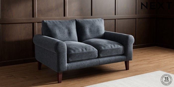 7.0.3 Buy Palermo Relaxed Sit 2 Seater Small Sofa Boucle Chenille Dark Slate Blue Tapered - Dark Brown from the Next UK online shop Click here to use our accessible website