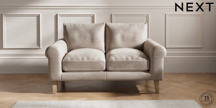 6.12.1 Buy Palermo Relaxed Sit 2 Seater Small Sofa Boucle Chenille Light Natural Tapered - Light from the Next UK online shop Click here to use our accessible website