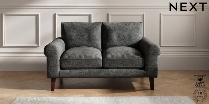 6.12.1 Buy Palermo Relaxed Sit 2 Seater Small Sofa Boucle Weave Easy Clean Charcoal Grey Tapered - Dark Brown from the Next UK online shop Click here to use our accessible website