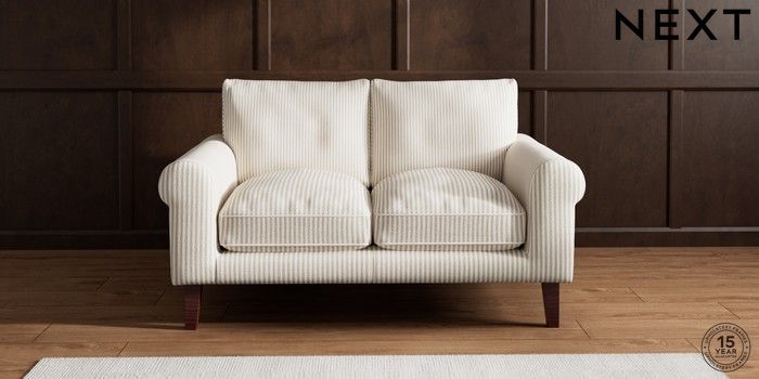 7.3.1 Buy Palermo Relaxed Sit 2 Seater Small Sofa Chenille Stripe Natural Tapered - Dark Brown from the Next UK online shop Click here to use our accessible website