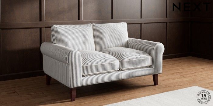 7.3.1 Buy Palermo Relaxed Sit 2 Seater Small Sofa Chenille Stripe Slate Blue Tapered - Dark Brown from the Next UK online shop Click here to use our accessible website
