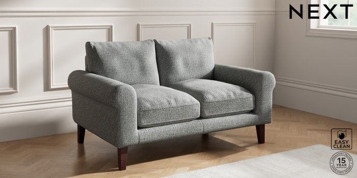 7.0.3 Buy Palermo Relaxed Sit 2 Seater Small Sofa Chunky Boucle Easy Clean Mid Grey Tapered - Dark Brown from the Next UK online shop Click here to use our accessible website