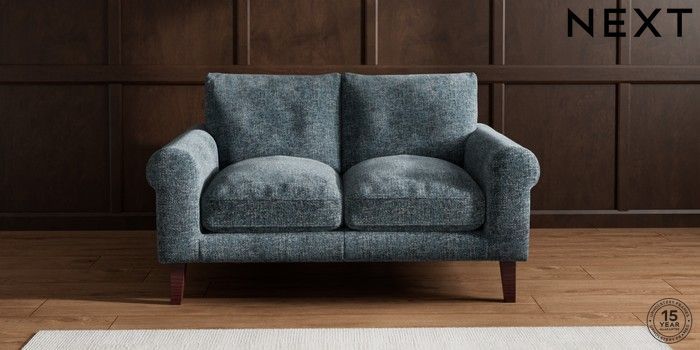 6.12.1 Buy Palermo Relaxed Sit 2 Seater Small Sofa Chunky Chenille Dark Navy Blue Tapered - Dark Brown from the Next UK online shop Click here to use our accessible website