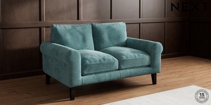7.0.3 Buy Palermo Relaxed Sit 2 Seater Small Sofa Chunky Chenille Mid Teal Green Tapered - Dark from the Next UK online shop Click here to use our accessible website
