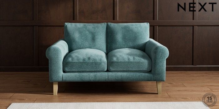6.12.1 Buy Palermo Relaxed Sit 2 Seater Small Sofa Chunky Chenille Mid Teal Green Tapered - Light from the Next UK online shop Click here to use our accessible website