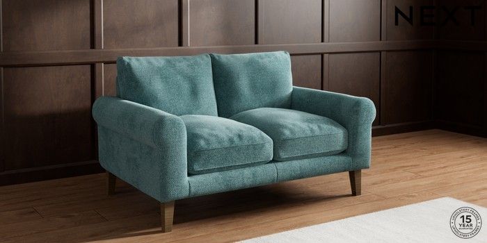 7.0.3 Buy Palermo Relaxed Sit 2 Seater Small Sofa Chunky Chenille Mid Teal Green Tapered - Mid from the Next UK online shop Click here to use our accessible website