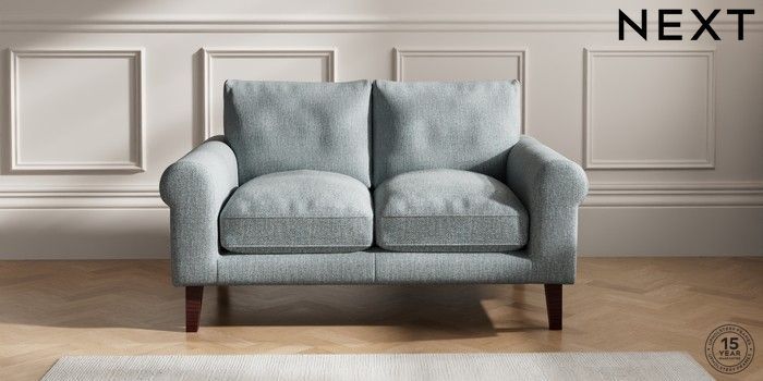 6.12.1 Buy Palermo Relaxed Sit 2 Seater Small Sofa Chunky Weave Mid Blue Tapered - Dark Brown from the Next UK online shop Click here to use our accessible website
