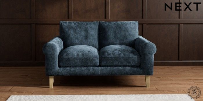 6.12.1 Buy Palermo Relaxed Sit 2 Seater Small Sofa Distressed Velour Midnight Blue Tapered - Light from the Next UK online shop Click here to use our accessible website