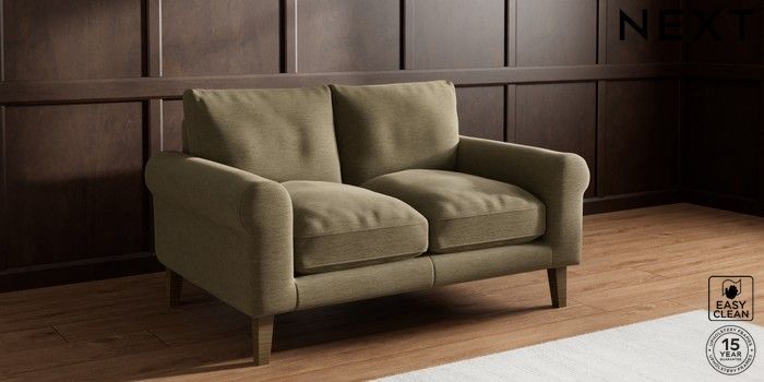 7.0.3 Buy Palermo Relaxed Sit 2 Seater Small Sofa Fine Chenille Easy Clean Dark Moss Green Tapered - Mid from the Next UK online shop Click here to use our accessible website