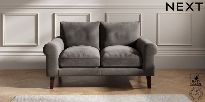 6.12.1 Buy Palermo Relaxed Sit 2 Seater Small Sofa Fine Chenille Easy Clean Dark Smoke Grey Tapered - Dark Brown from the Next UK online shop Click here to use our accessible website