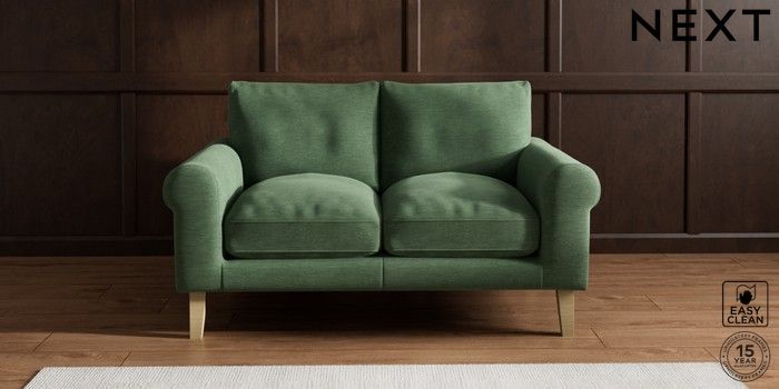 6.12.1 Buy Palermo Relaxed Sit 2 Seater Small Sofa Fine Chenille Easy Clean Mid Khaki Green Tapered - Light from the Next UK online shop Click here to use our accessible website