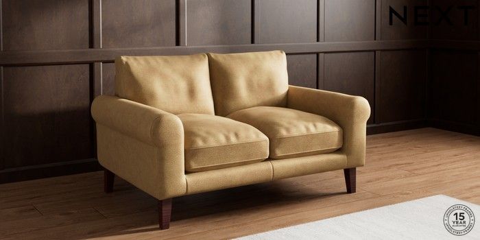 7.0.3 Buy Palermo Relaxed Sit 2 Seater Small Sofa Luxe Chenille Honey Yellow Tapered - Dark Brown from the Next UK online shop Click here to use our accessible website