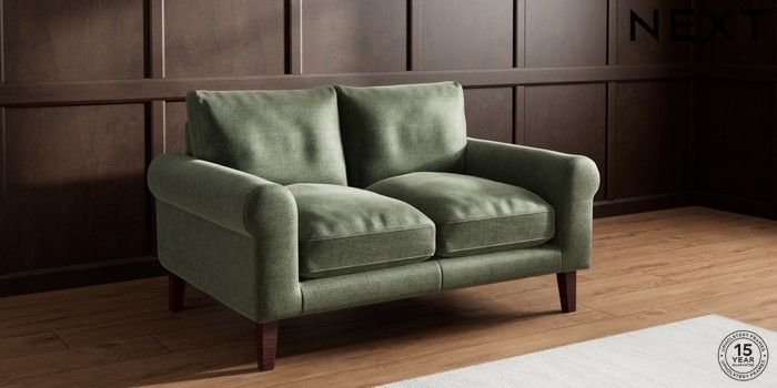 7.0.3 Buy Palermo Relaxed Sit 2 Seater Small Sofa Luxe Chenille Mid Green Tapered - Dark Brown from the Next UK online shop Click here to use our accessible website