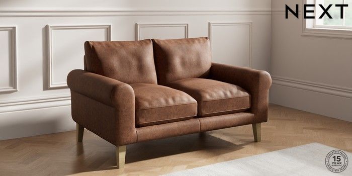 7.0.3 Buy Palermo Relaxed Sit 2 Seater Small Sofa Monza Faux Leather Easy Clean Chestnut Brown Tapered - Light from the Next UK online shop Click here to use our accessible website