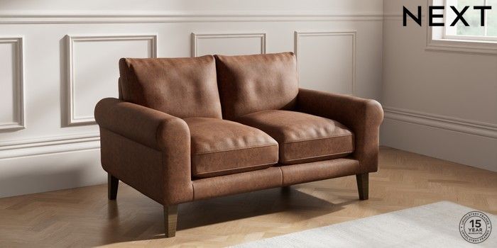 7.0.3 Buy Palermo Relaxed Sit 2 Seater Small Sofa Monza Faux Leather Easy Clean Chestnut Brown Tapered - Mid from the Next UK online shop Click here to use our accessible website