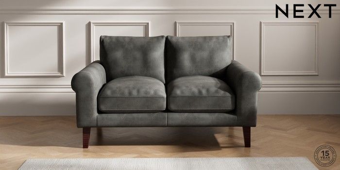 6.12.1 Buy Palermo Relaxed Sit 2 Seater Small Sofa Monza Faux Leather Easy Clean Dark Grey Tapered - Dark Brown from the Next UK online shop Click here to use our accessible website