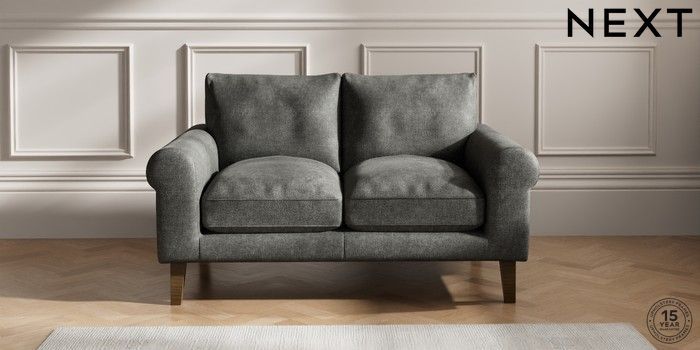 6.12.1 Buy Palermo Relaxed Sit 2 Seater Small Sofa Plush Chenille Dark Grey Tapered - Mid from the Next UK online shop Click here to use our accessible website