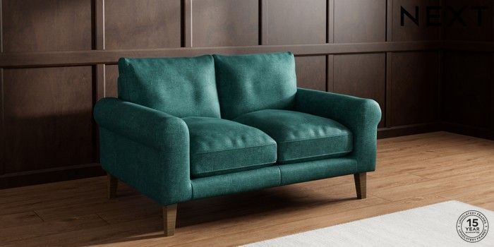 7.0.3 Buy Palermo Relaxed Sit 2 Seater Small Sofa Plush Chenille Dark Teal Green Tapered - Mid from the Next UK online shop Click here to use our accessible website