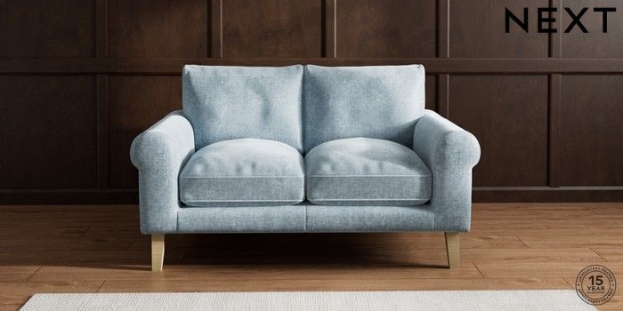 7.2.6 Buy Palermo Relaxed Sit 2 Seater Small Sofa Plush Chenille Light Blue Tapered - Light from the Next UK online shop Click here to use our accessible website